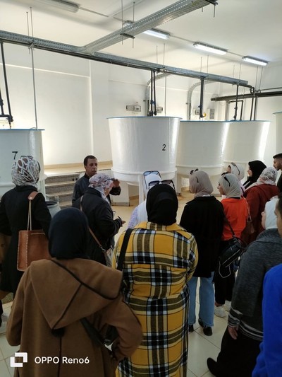 للتعرف على نظام الإستزراع السمكى البحري وأليآته حيث تفقدوا المفرخ السمكي وتم شرح إمكانياته ومراحل عملية التفريخ وأقسام المفرخ وكذلك تم زيارة المزرعة السمكية البحرية والتعرف على أنواع الأسماك المستزرعة بالموقع وفي ختام الزيارة تم التقاط بعض الصور التذكارية للطلبة مع العاملين بالمشروع .
